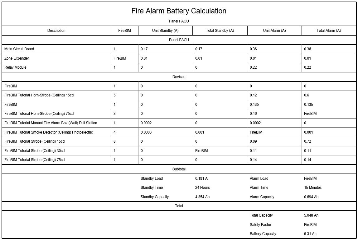 FireBIM Design→ command. The Select Panel for Battery Calculation dialog box will open.Battery Schedule