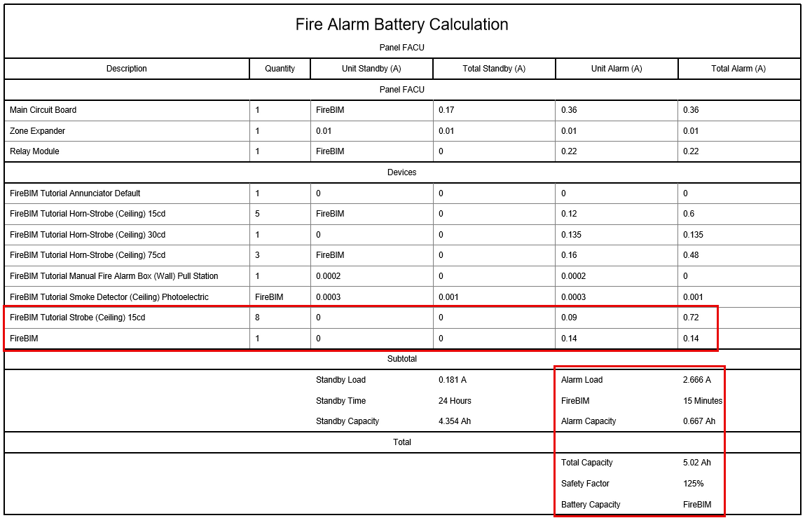Select the battery calculation schedule on the drafting view. The schedule will update to show the new values.