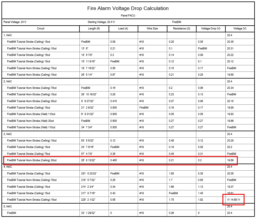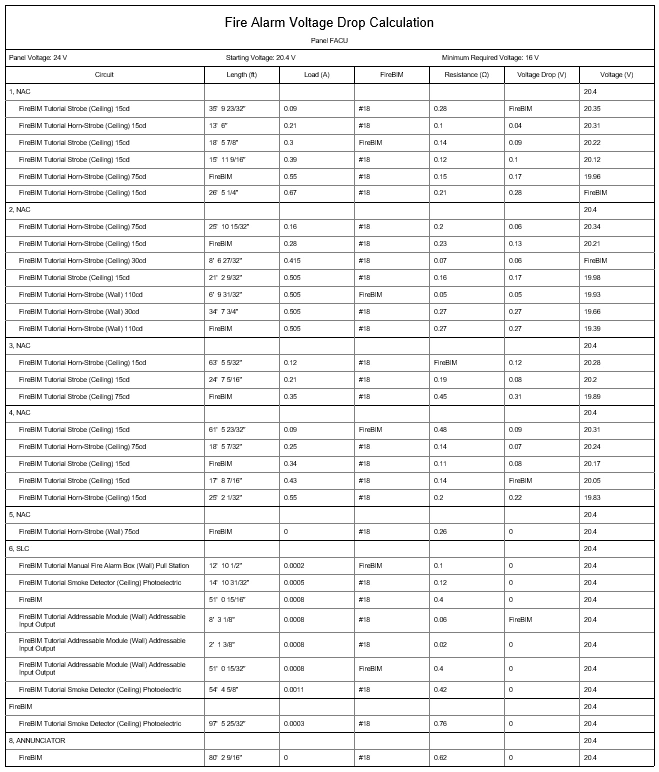 FireBIM Design→ command and select the voltage drop calculation schedule on the drafting view. The schedule will update to show the new values. Voltages below 16V will be highlighted.Schedule Update